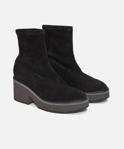 Upper: black stretch suede lambskin / Lining: black goatskin lining / Sole: black welt, anthracite EVA platform, black