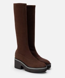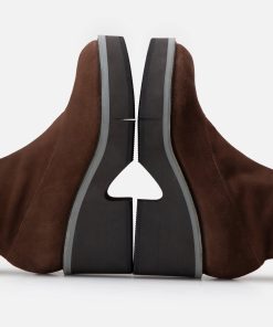 Upper: brown stretch suede lambskin / Lining: gold goatskin lining / Sole: black welt, anthracite EVA platform, black sole