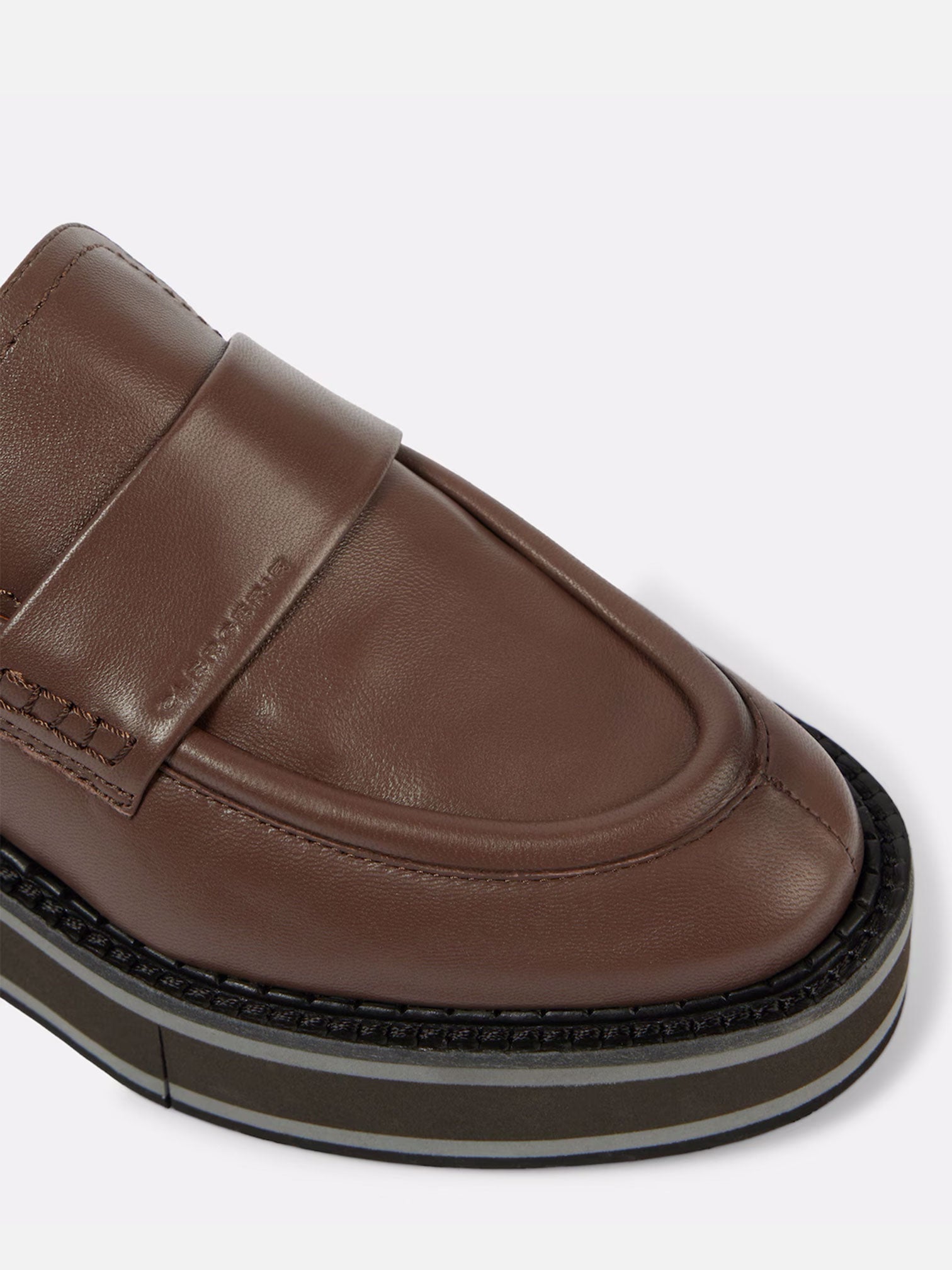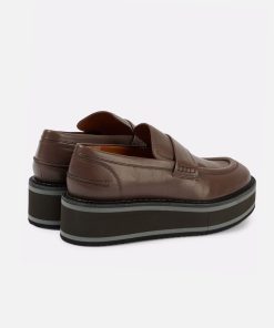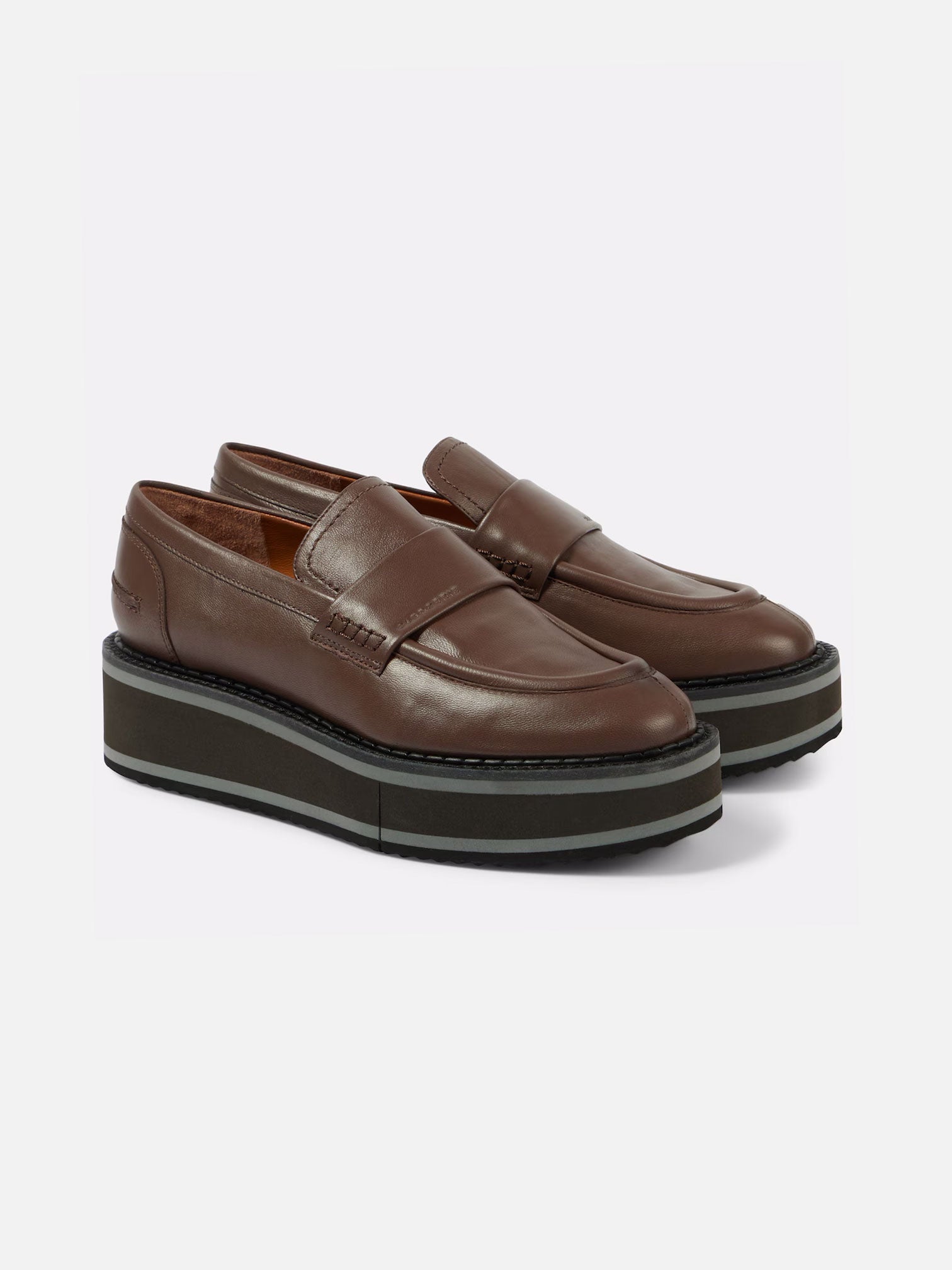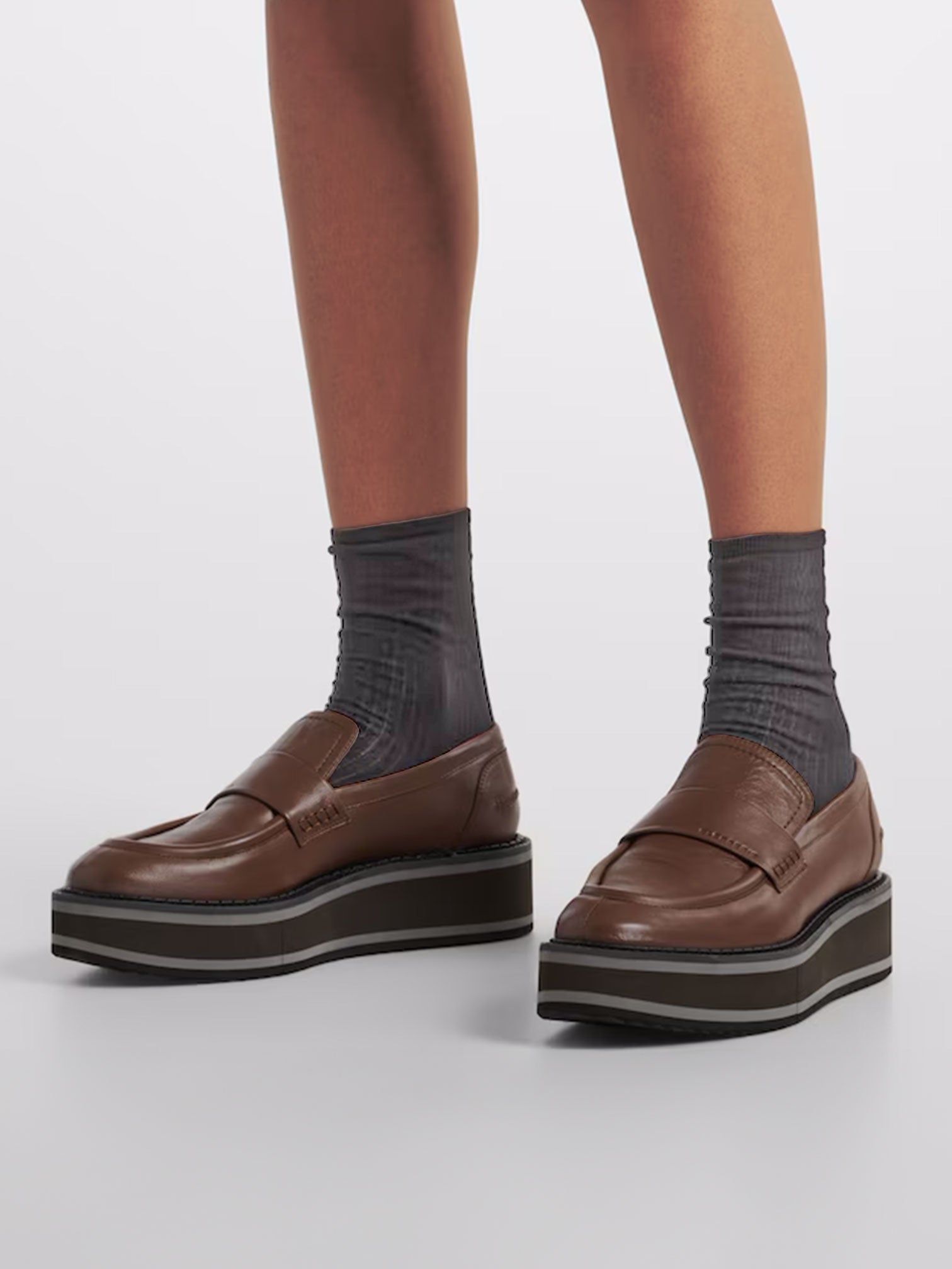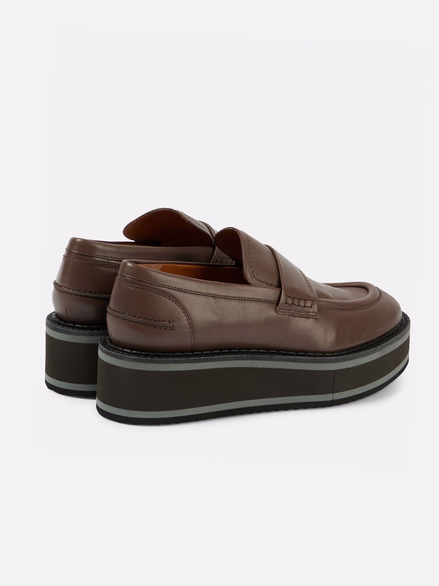 Upper: brown lambskin / Lining: gold goatskin lining / Sole: black welt, anthracite EVA platform, black sole