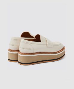 Upper: white lambskin / Lining: gold goatskin lining / Sole: amber welt, ceramic EVA flatform, natural sole