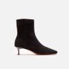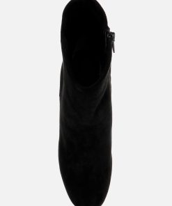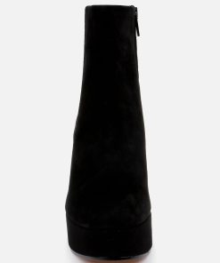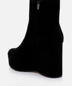Upper: black suede goatskin / Lining: black goatskin lining / Sole: black suede goatskin covered platform, amber leather sole, black edge