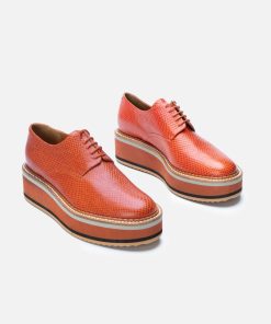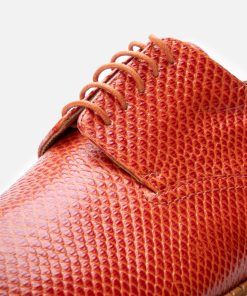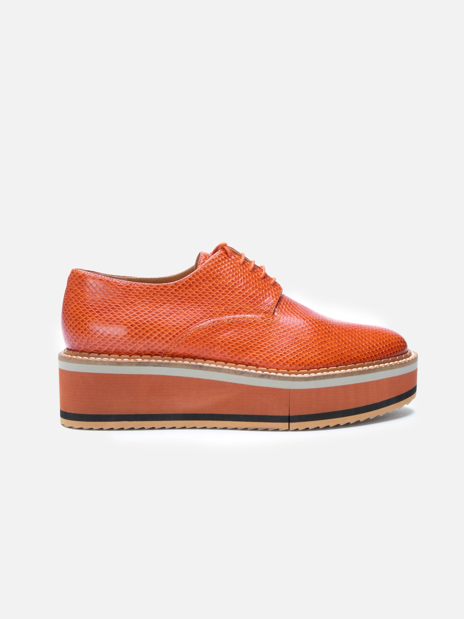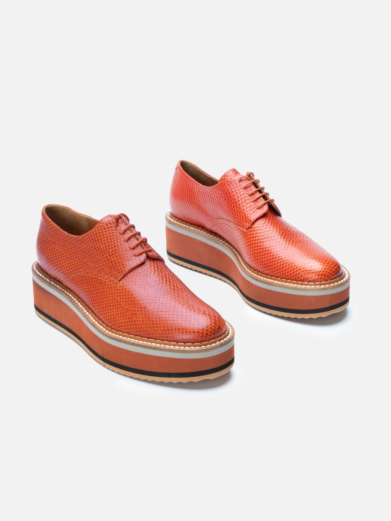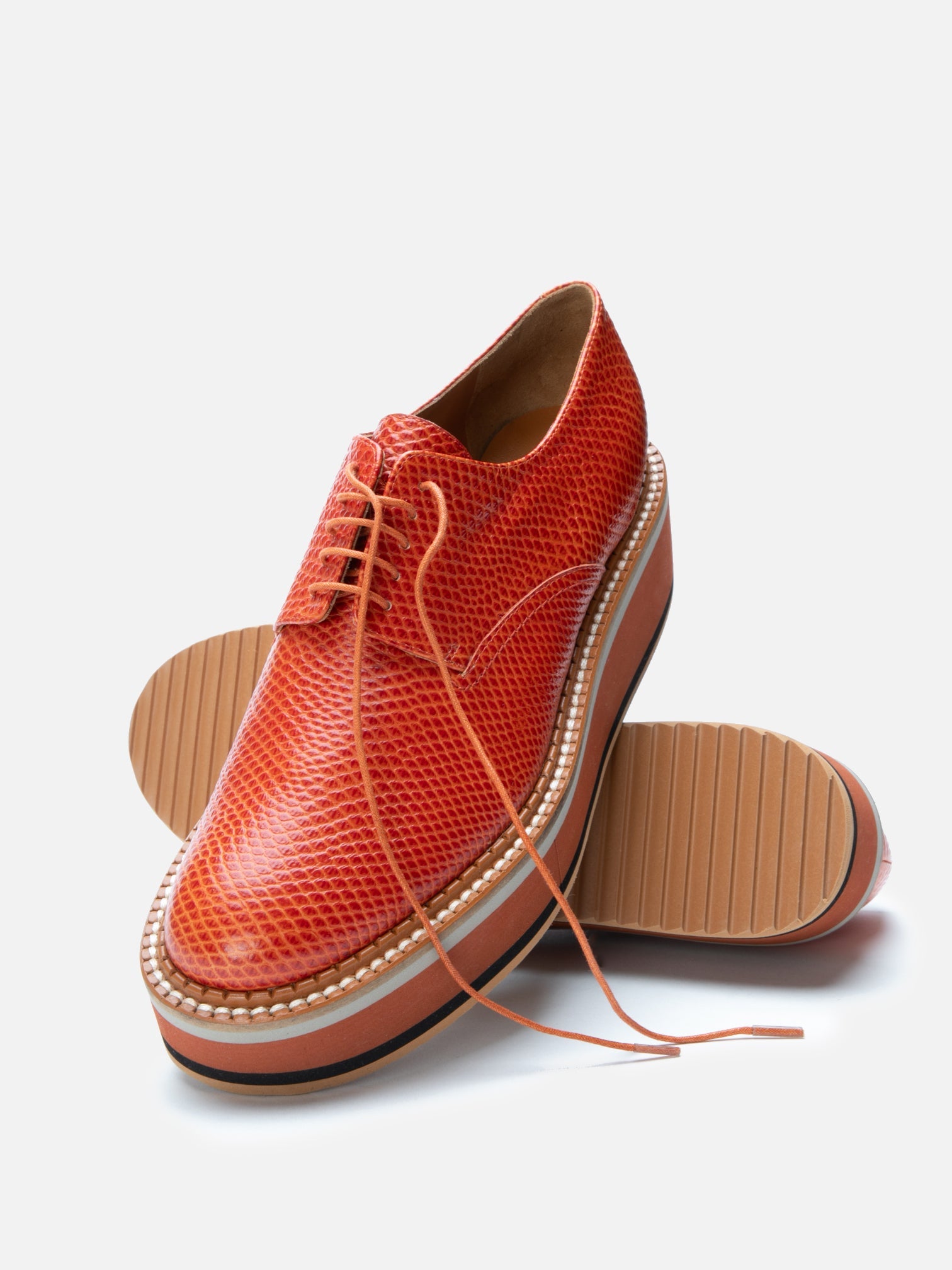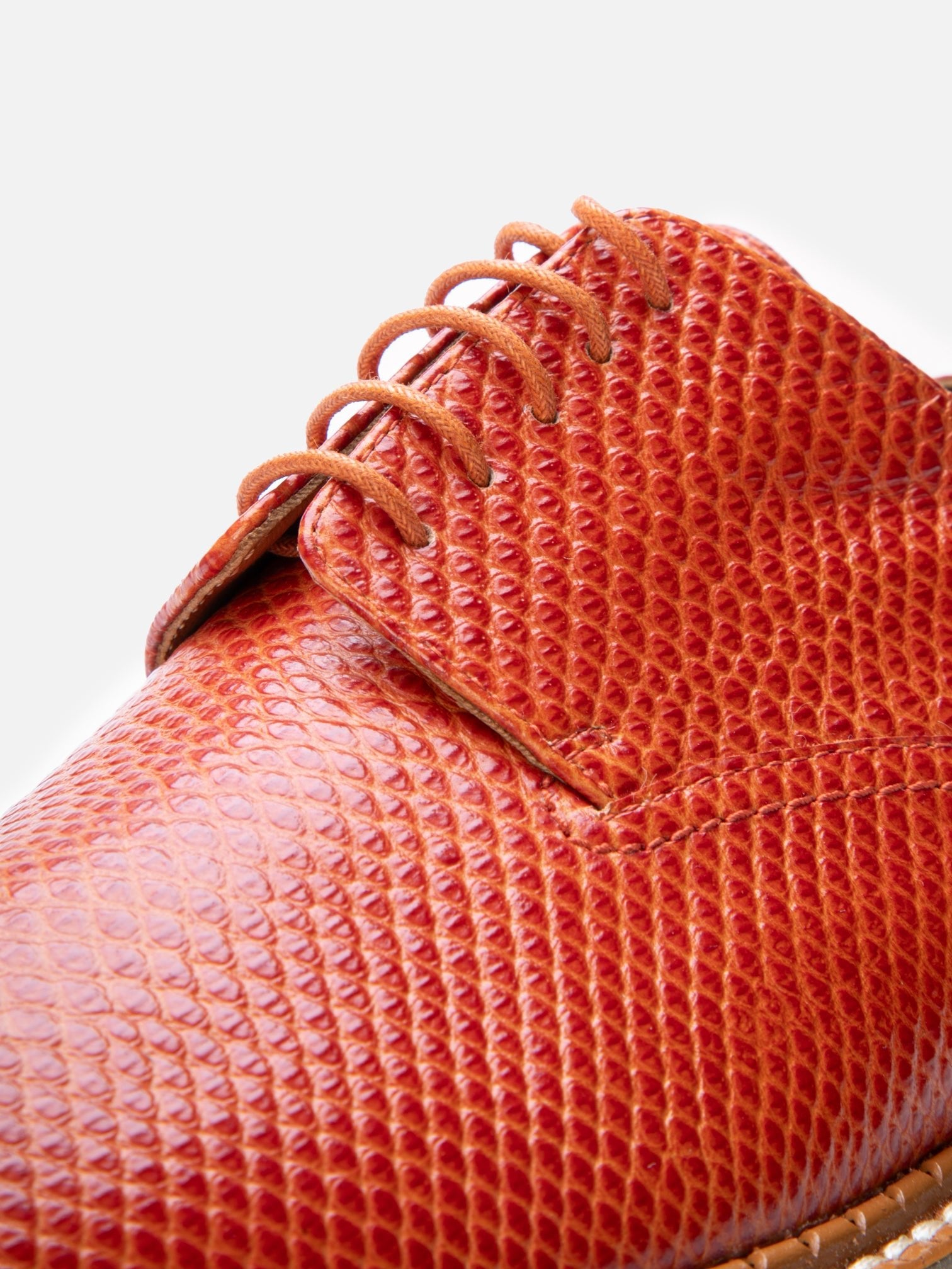 Upper: spice karung effect embossed calfskin / Lining: gold goatskin lining / Sole: amber welt, spice EVA flatform, natural sole