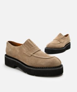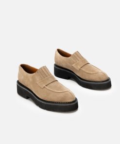 Upper: gobi suede split calfskin / Lining: gold goatskin lining / Sole: black welt, black EVA flatform, anthracite sole