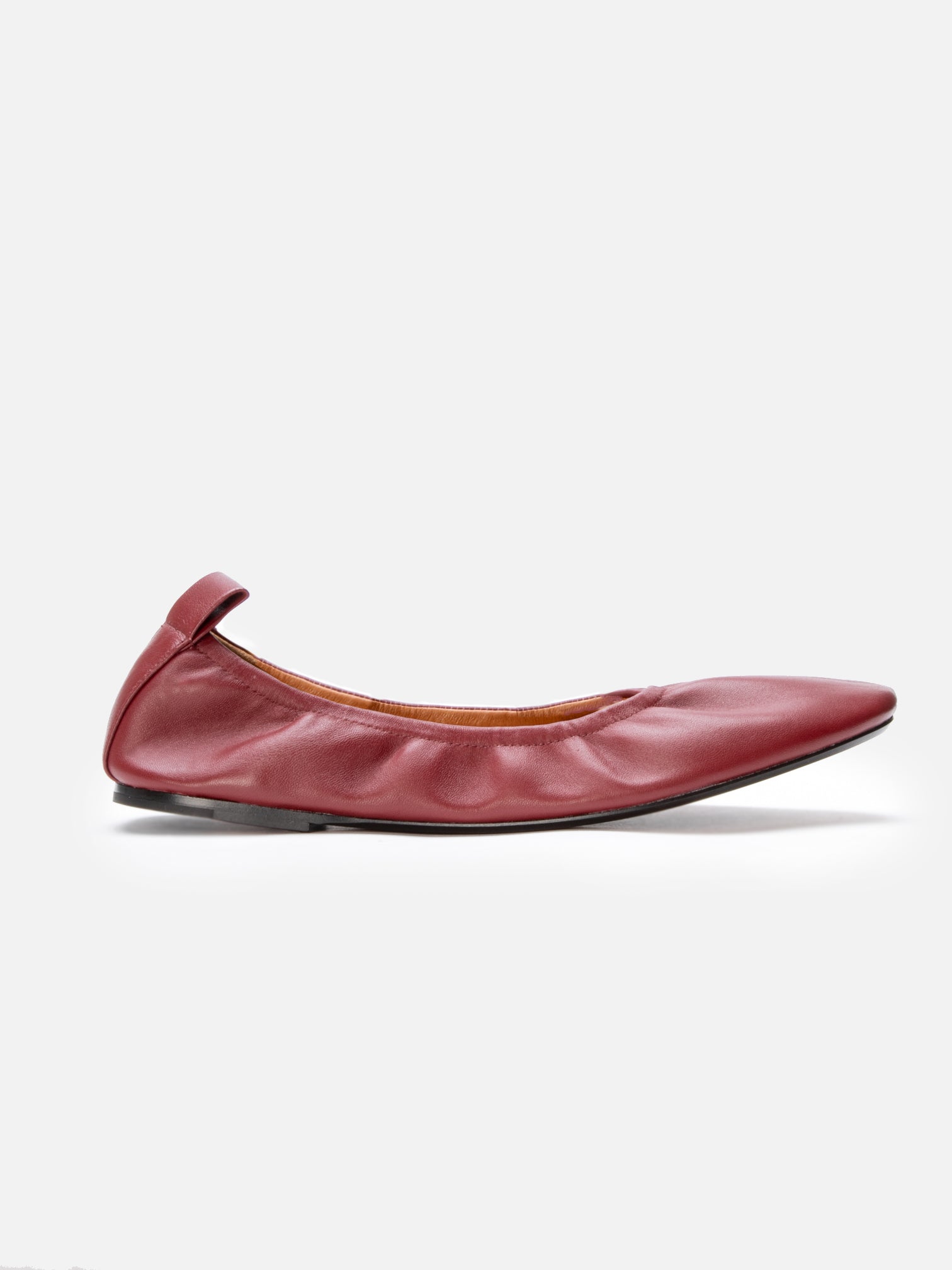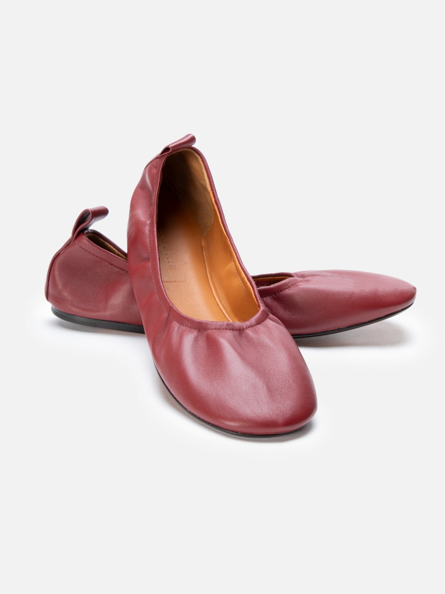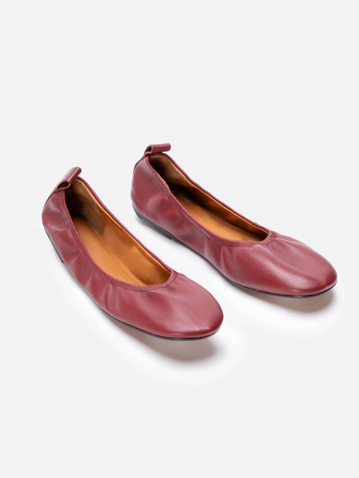 Upper: garnet lambskin / Lining: gold goatskin lining / Sole: amber leather sole, dark brown edge