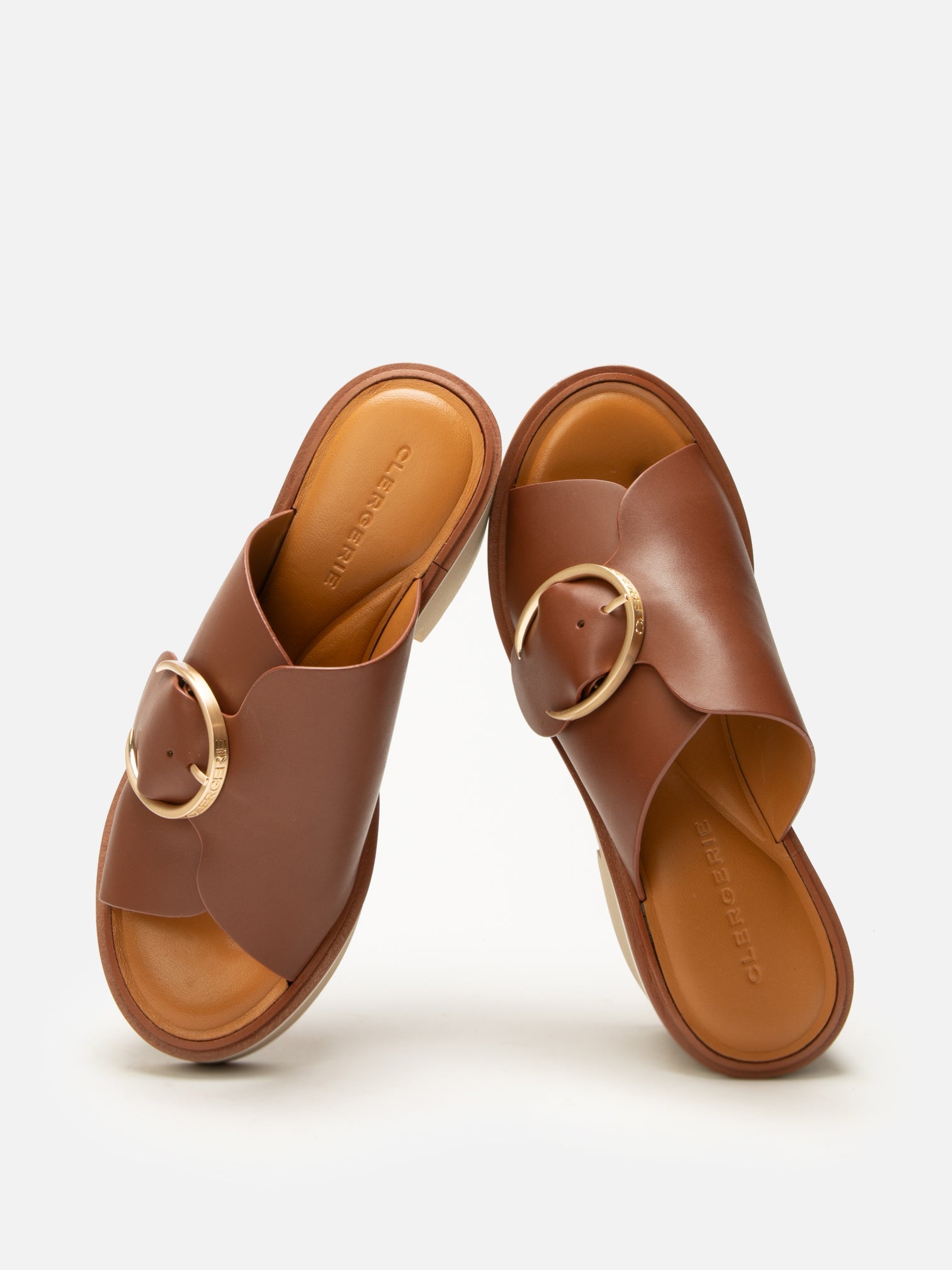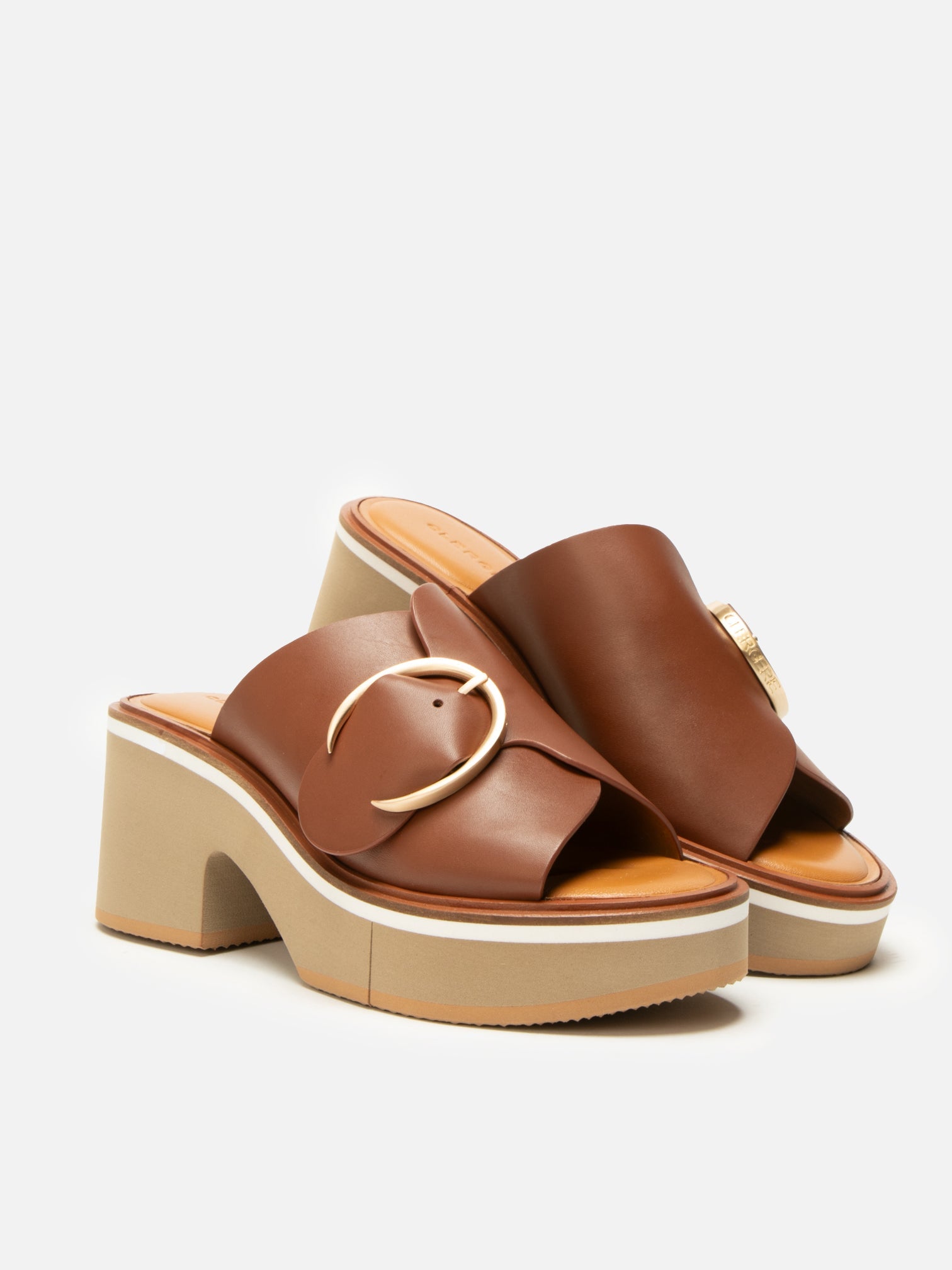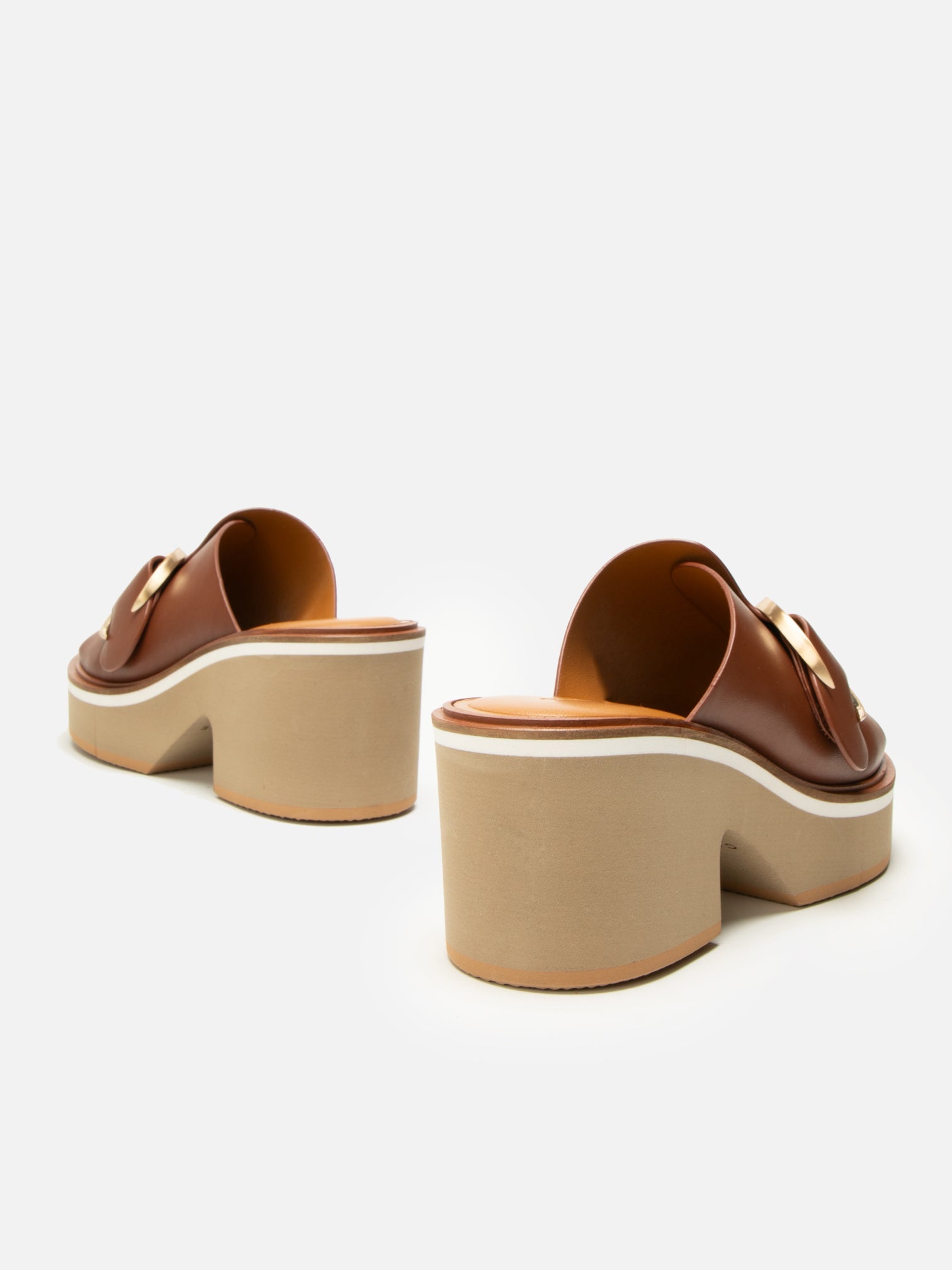 Upper: Wood smooth calfskin / Lining: Gold crust lambskin / Sole: Amber welt, ceramic EVA flatform, natural sole