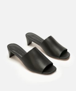 Upper: Black lambskin / Lining: Black goatskin / Sole: Black smooth calfskin covered heel, amber leather sole, black edge