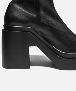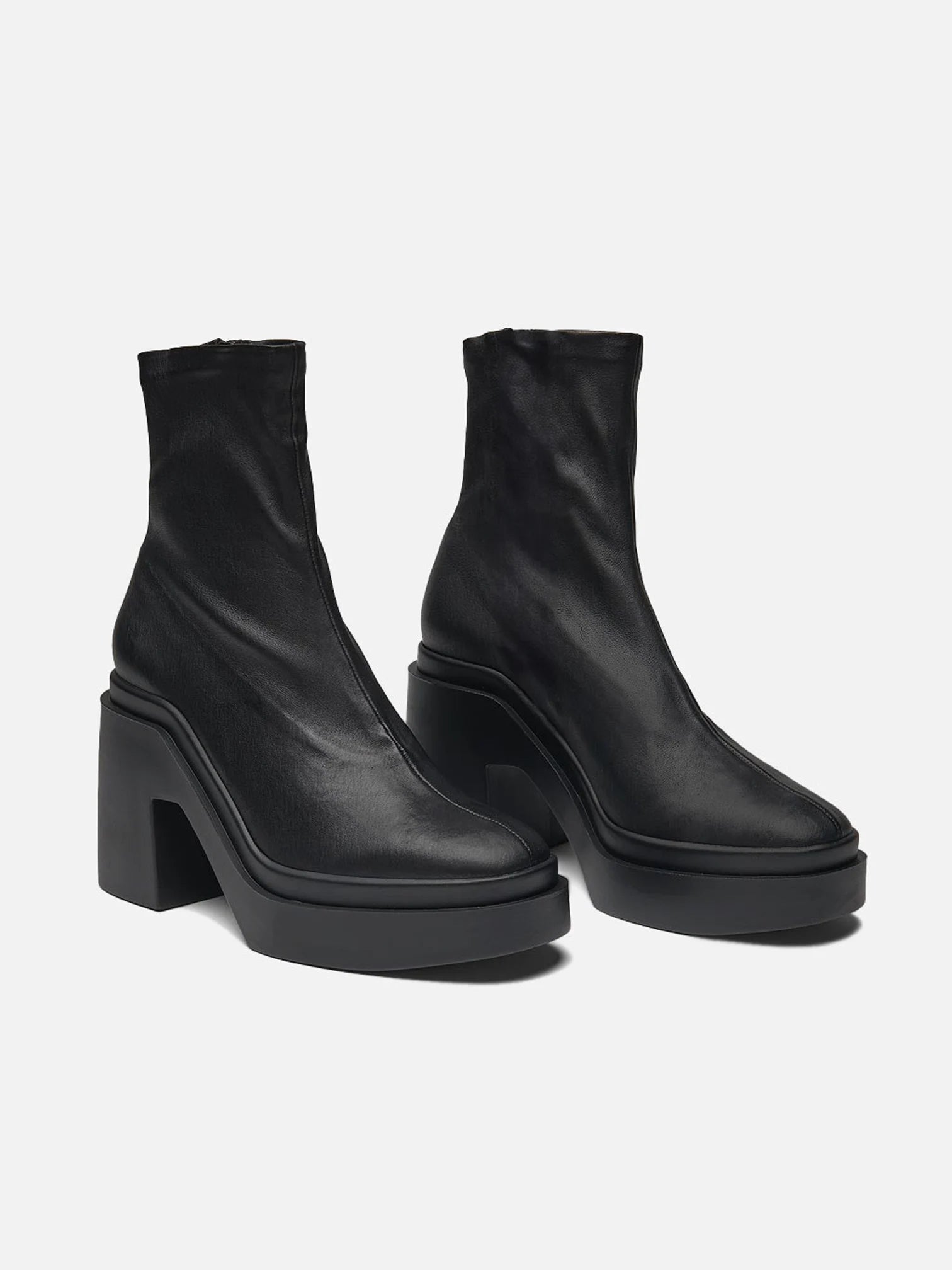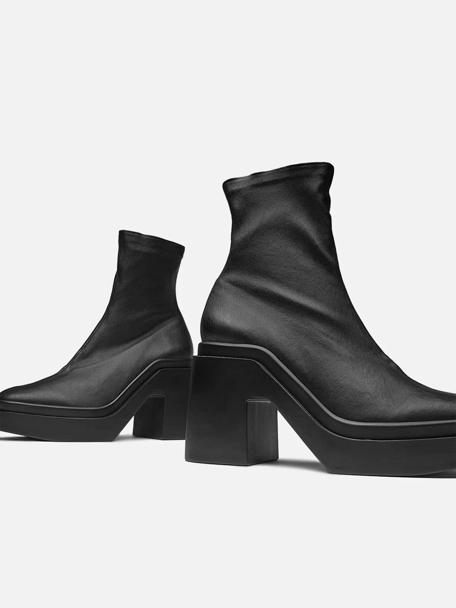 Upper: black stretch lambskin / Lining: goatskin / Sole: black rubber platform