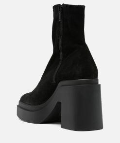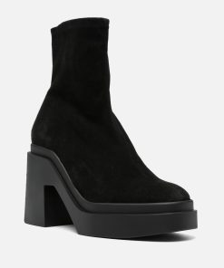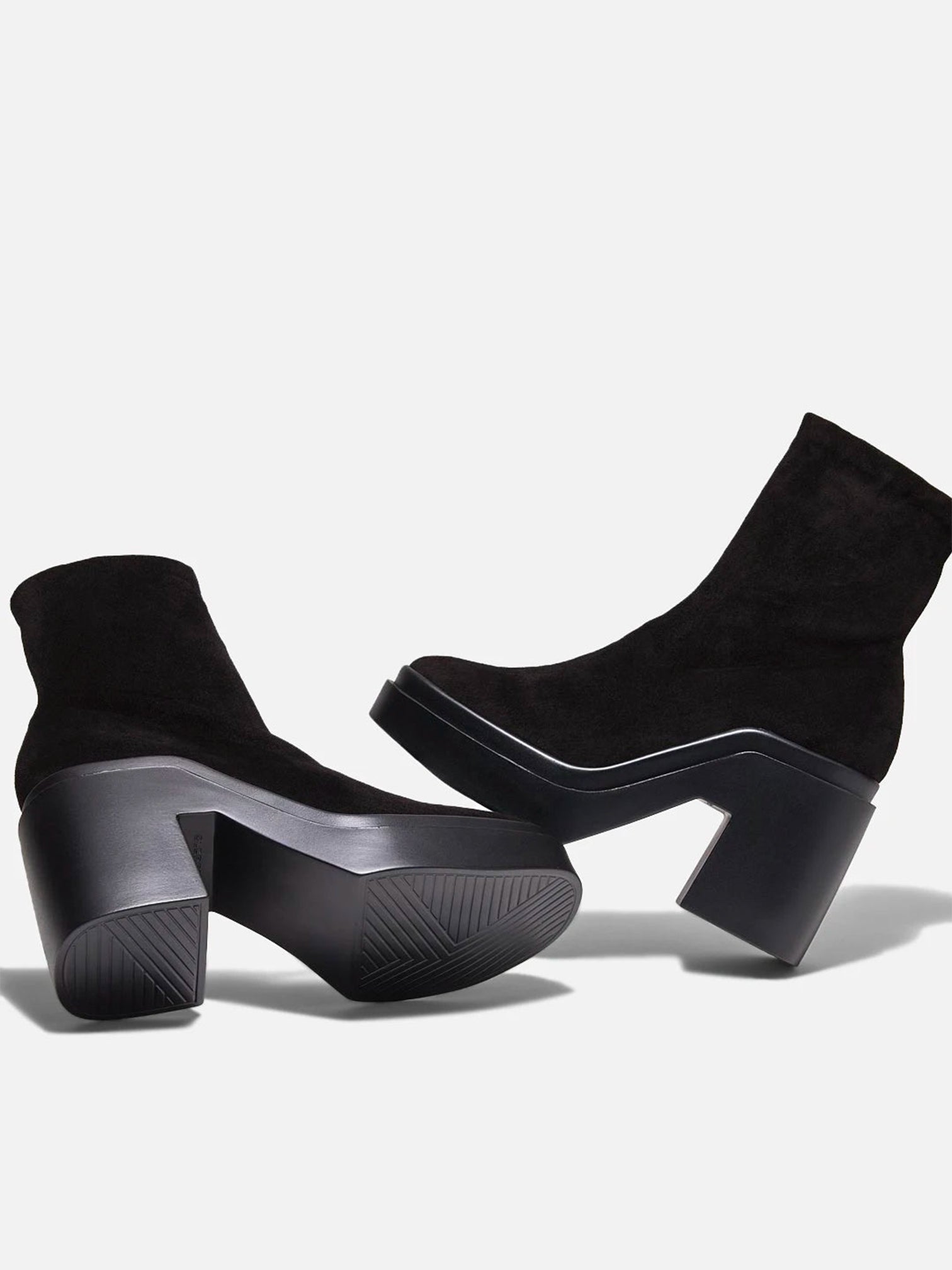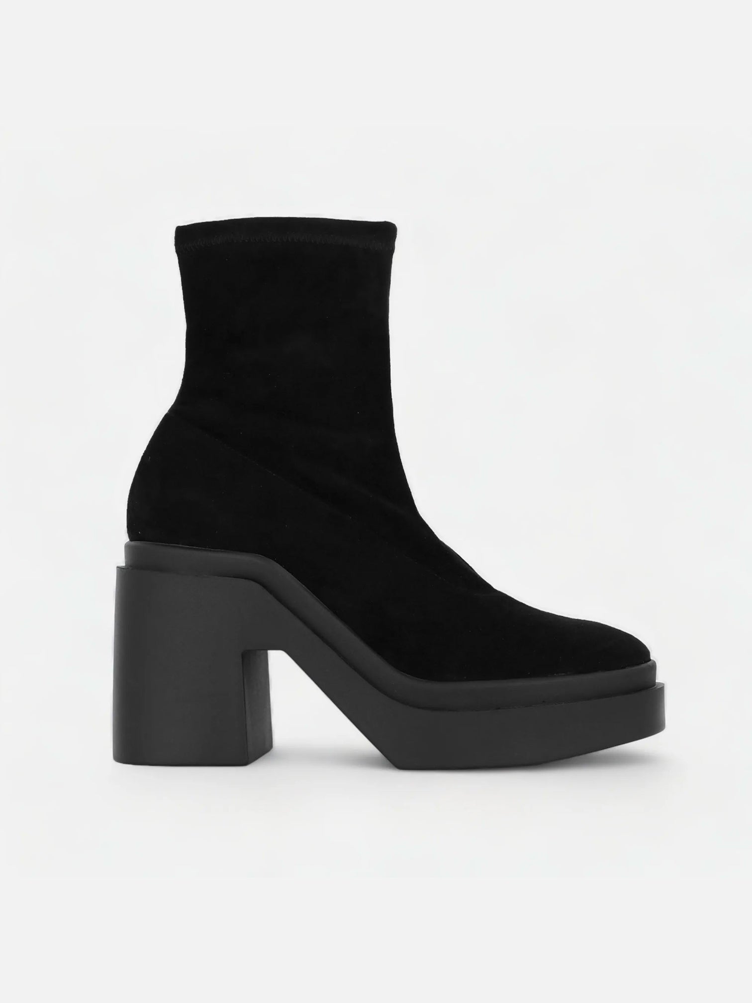 Upper: black stretch suede lambskin / Lining: black goatskin lining / Sole: black rubber platform