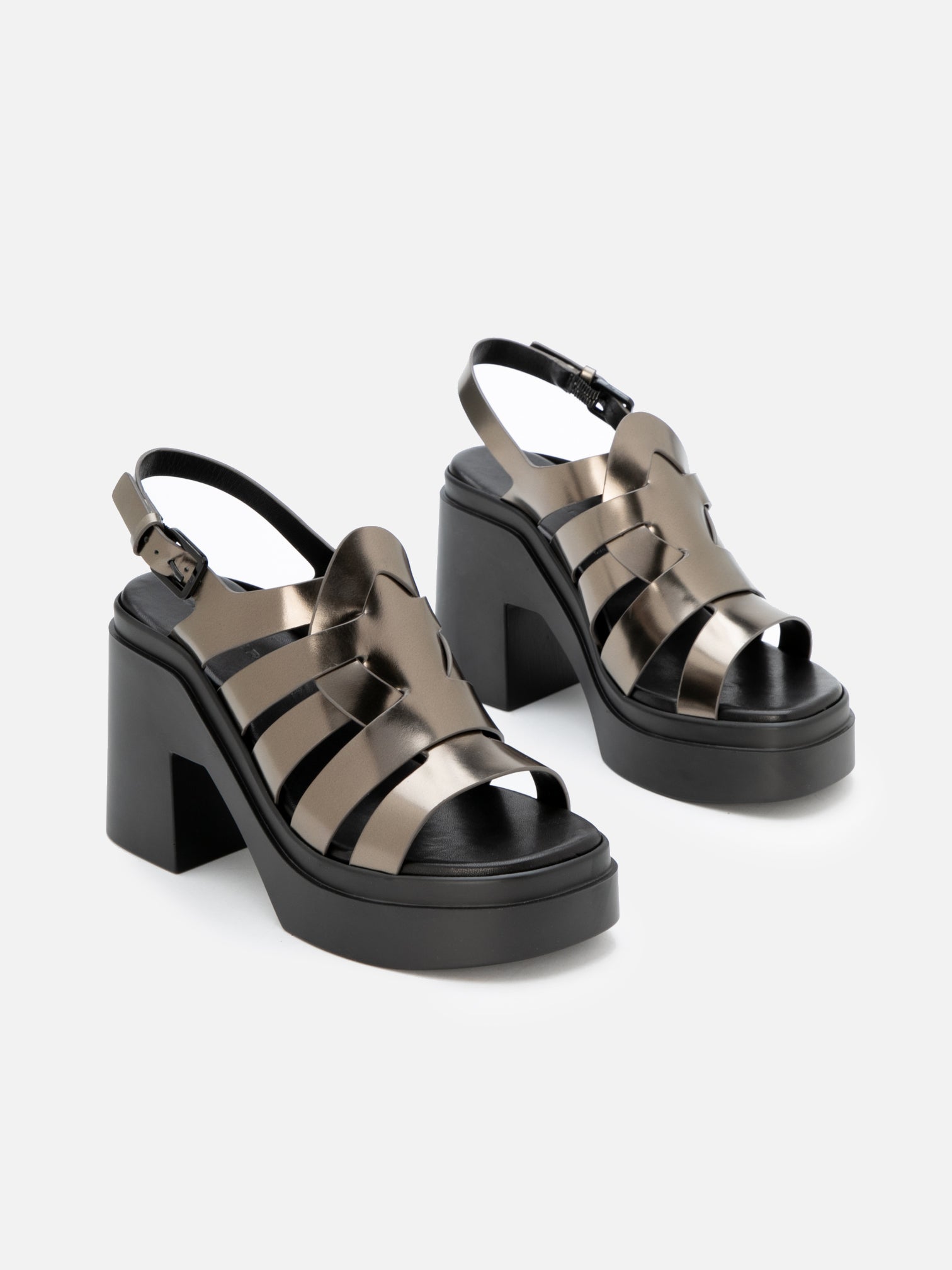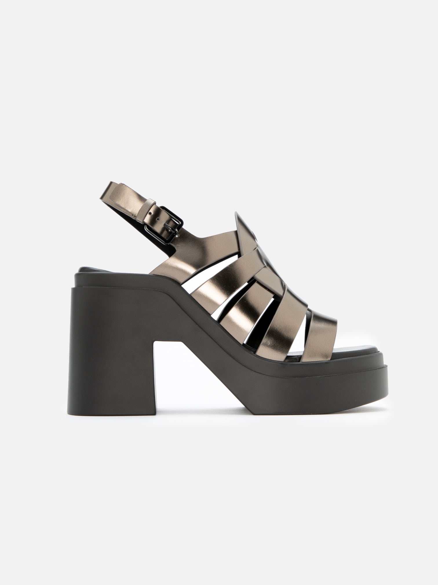 Upper: gobi metallic glossed calfskin / Lining: black goatskin lining / Sole: black rubber platfrom