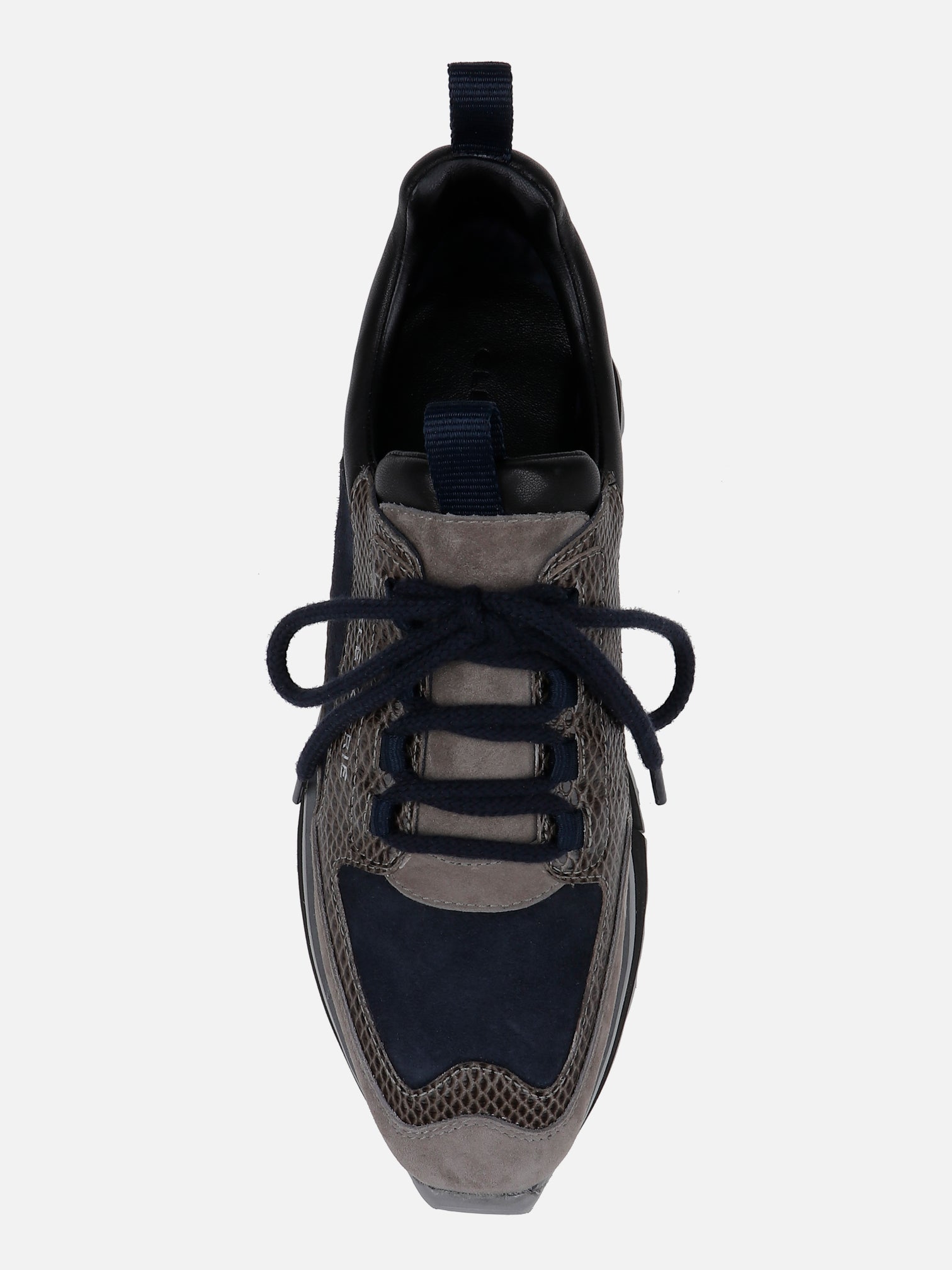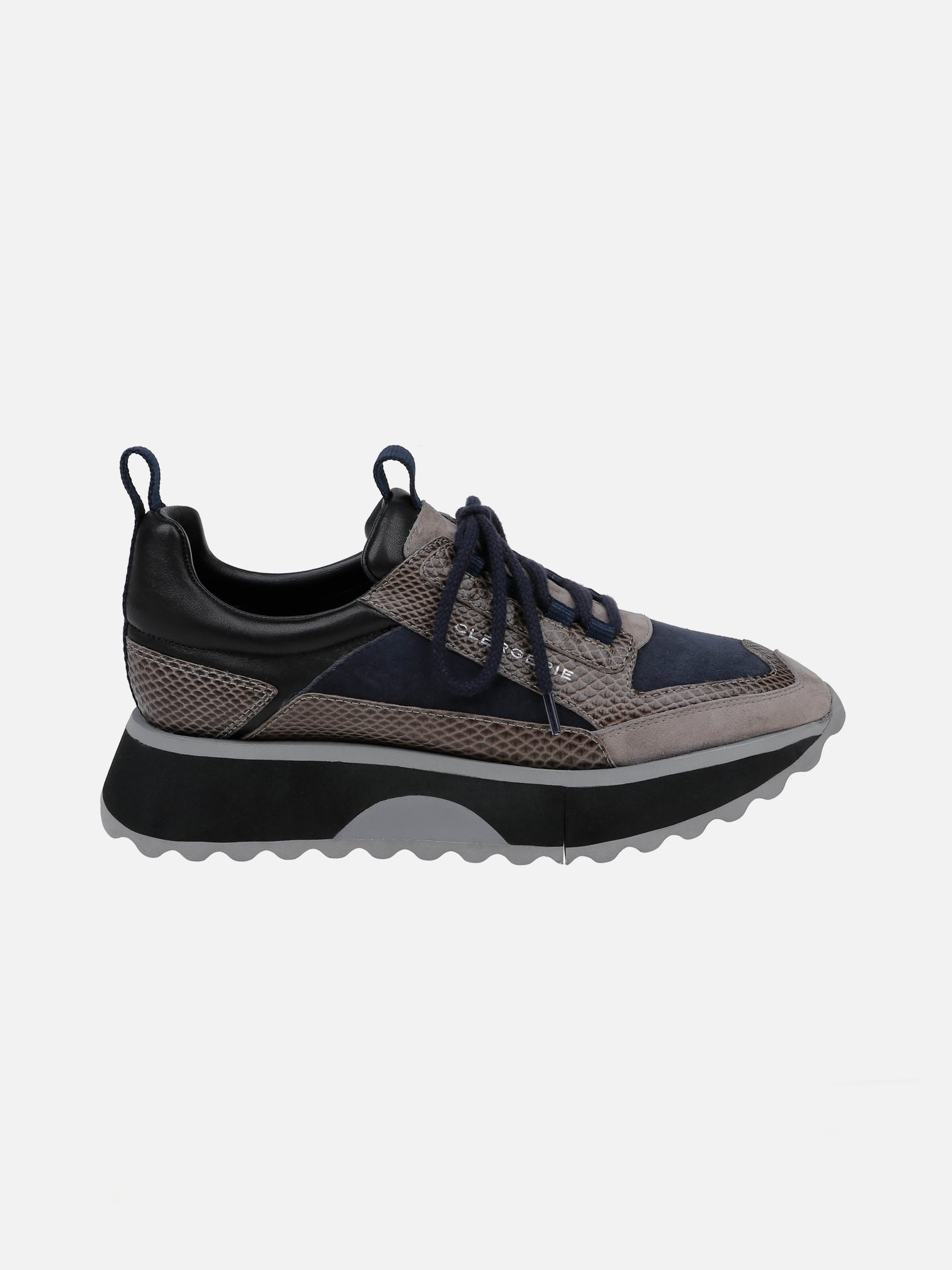 Upper: stone suede goatskin, stone karung effect embossed calfskin, mineral suede goatskin, black lambskin / Lining: black lambskin lining / Sole: anthracite EVA sole