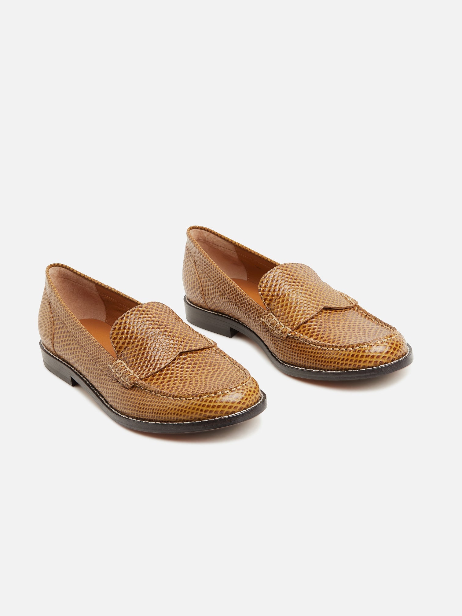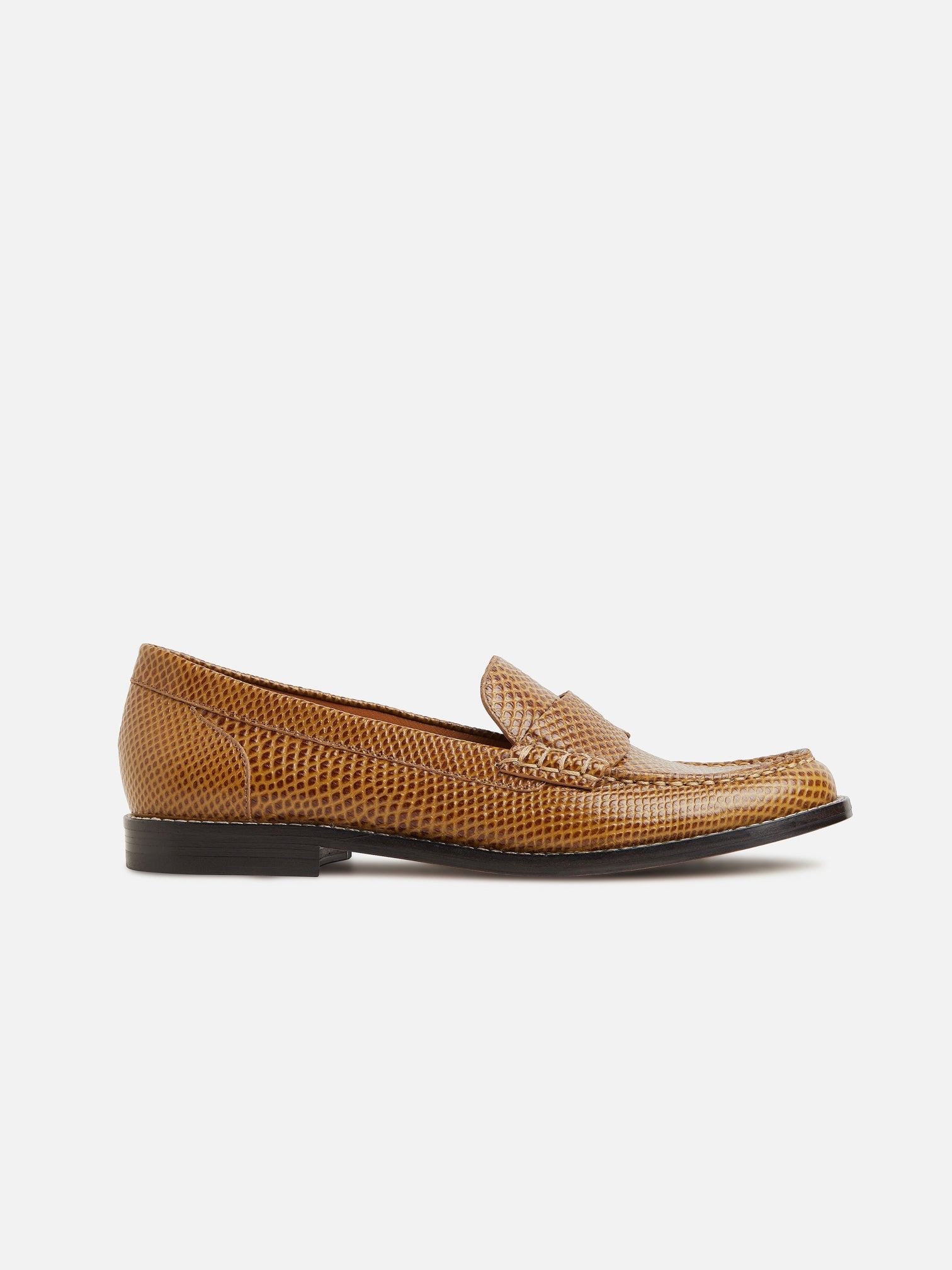 Upper: gobi karung effect embossed calfskin / Lining: gold goatskin lining / Sole: amber leather sole, dark brown edge