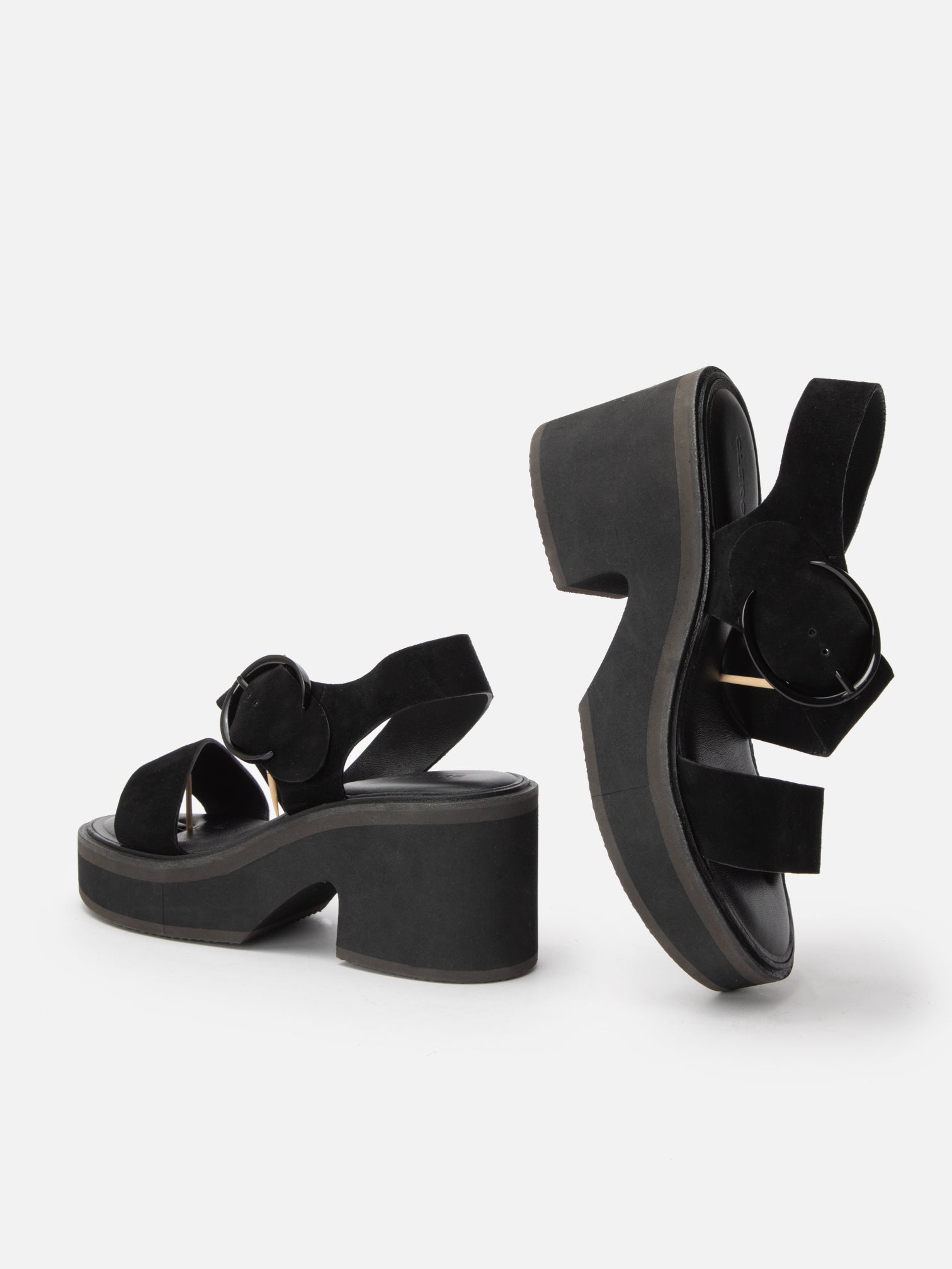 Upper: Black suede goatskin / Lining: Black crust lambskin / Sole: Black welt, black EVA flatform, anthracite sole