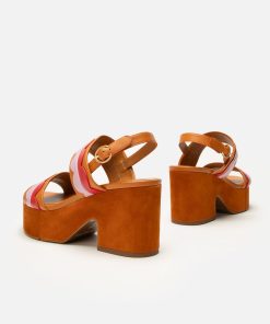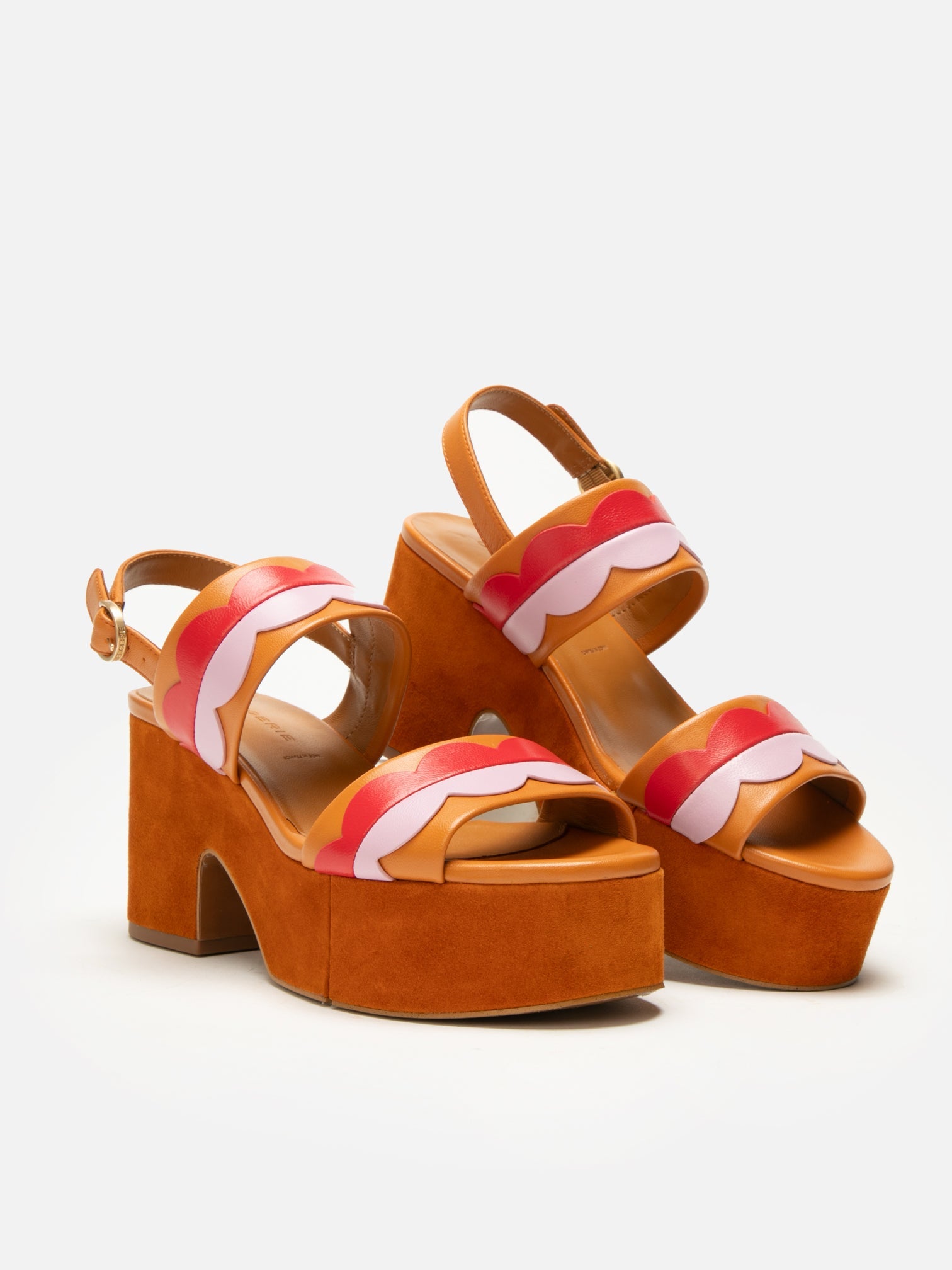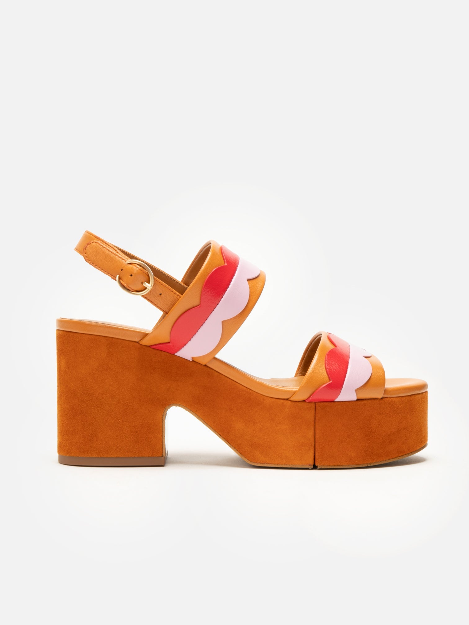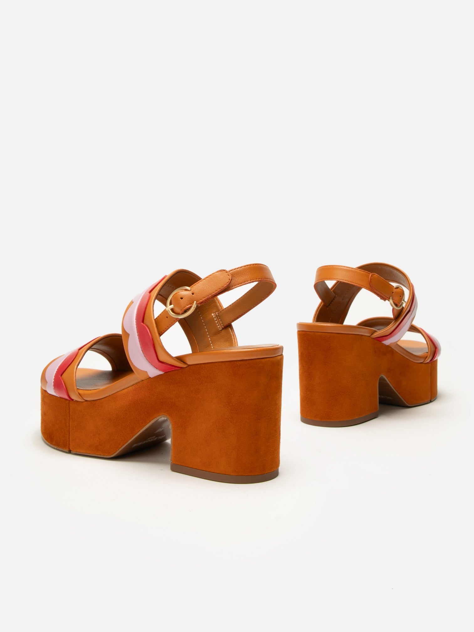 Upper: Ginger lambskin, dolly lambskin, diva lambskin / Lining: Gold goatskin / Sole: Ginger suede goatskin covered platform, arizona sole, natural edge