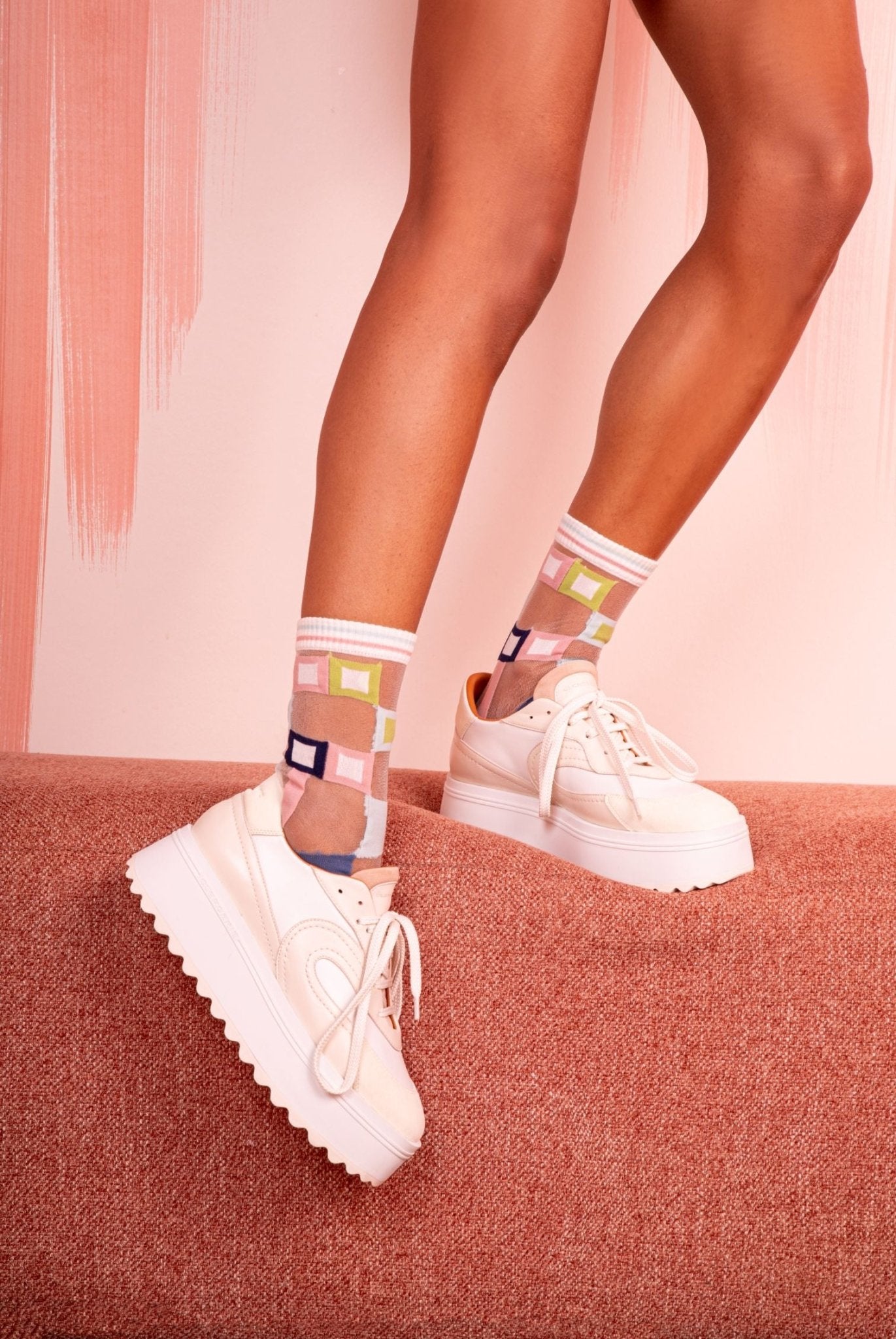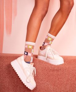 Upper: Shell suede goatskin, white lambskin, shell lambskin / Lining: Gold crust lambskin / Sole: White rubber sole
