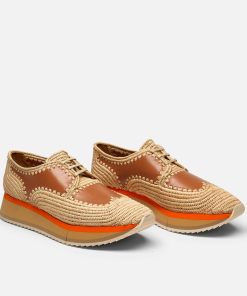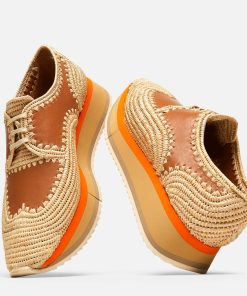 Upper: natural raffia, longan smooth calfskin / Lining: gold goatskin / Sole: longan EVA sole
