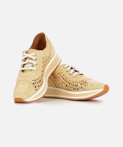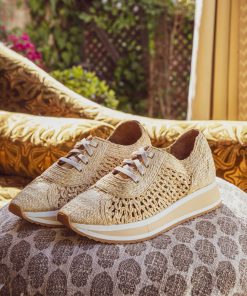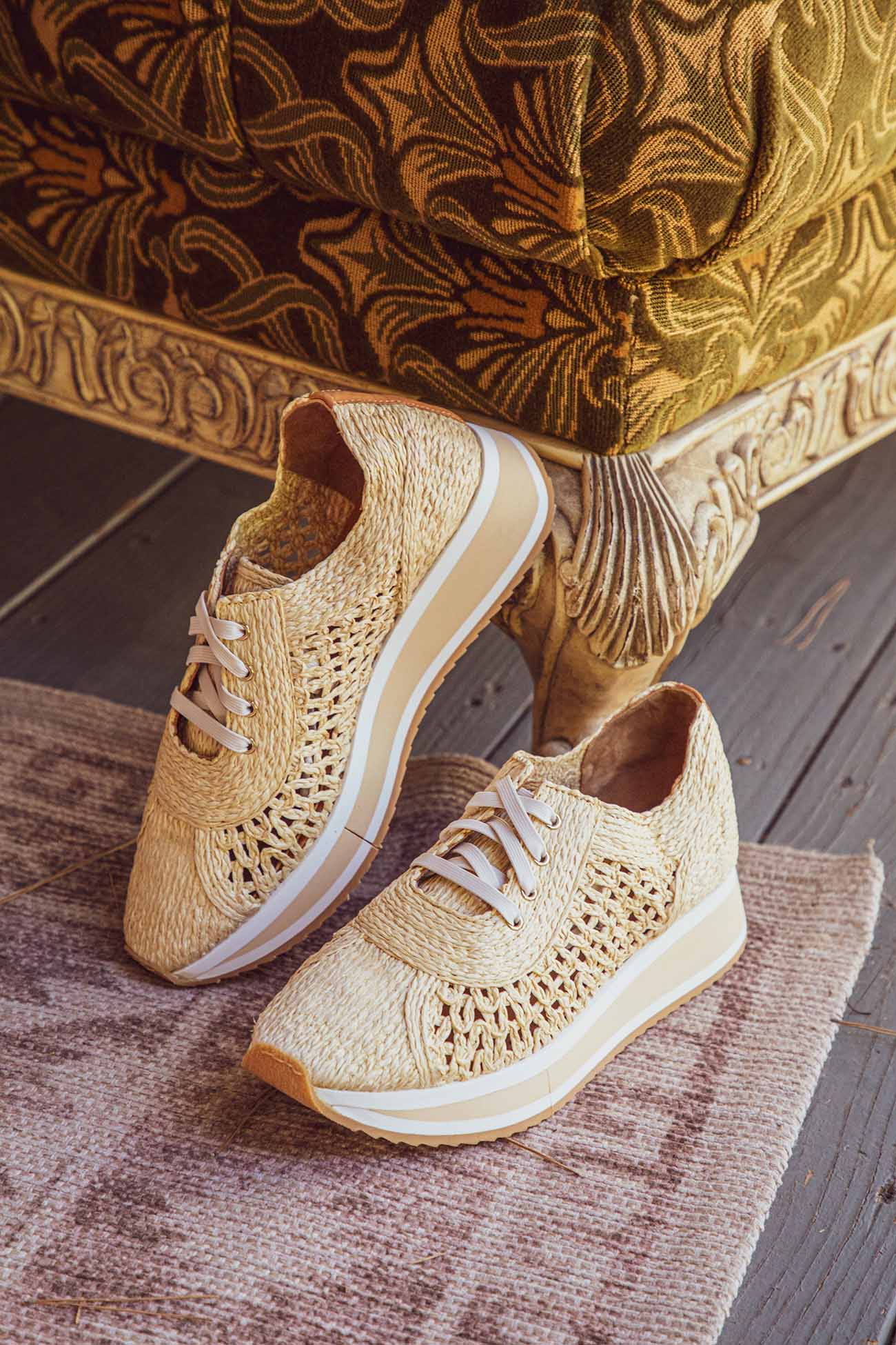 Upper: synthetic raffia / Lining: goatskin / Sole: EVA