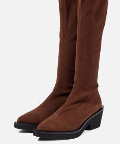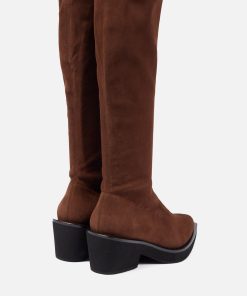 Upper: brown stretch suede lambskin / Lining: gold goatskin lining / Sole: black welt, black EVA platform, anthracite sole