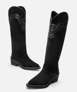 Upper: black suede split calfskin, black smooth calfskin, black lambskin / Lining: black goatskin lining / Sole: black welt, black EVA platform, anthracite sole