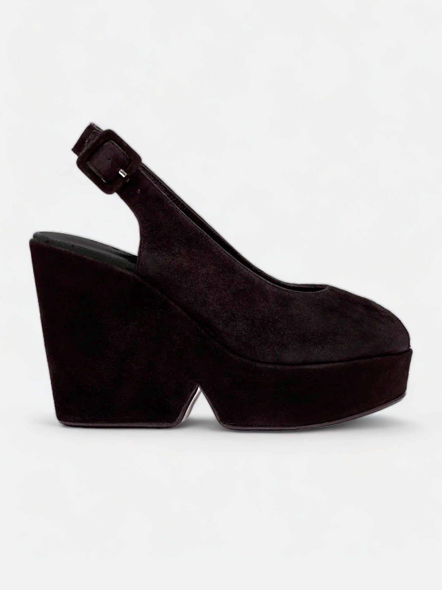 Upper: suede goatskin / Lining: golden goatskin / Sole: suede goatskin covered platform